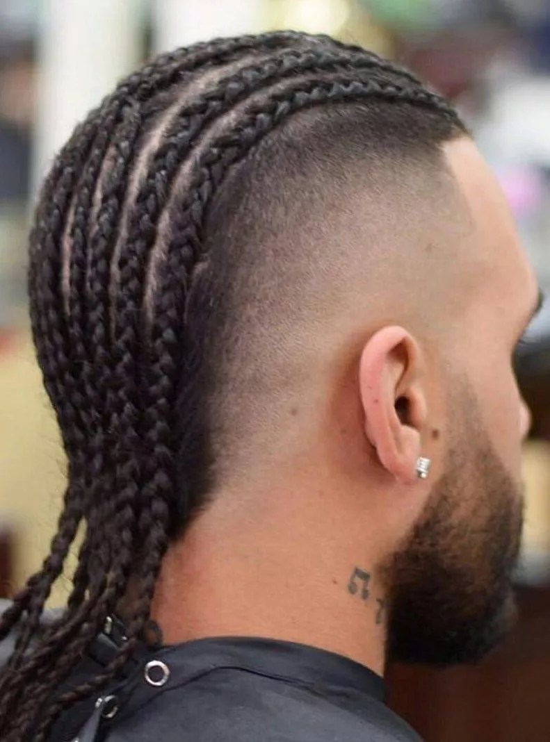 Braided dreadlocks bear a resemblance to cornrows, though the latter is created by sectioning small parts of the hair at the scalp and braiding them. In contrast, dreadlocks are thicker or thinner strands of dreaded hair intertwined to form braids. This style can be executed throughout the head or braided only at the scalp before transitioning to classic dreadlocks.